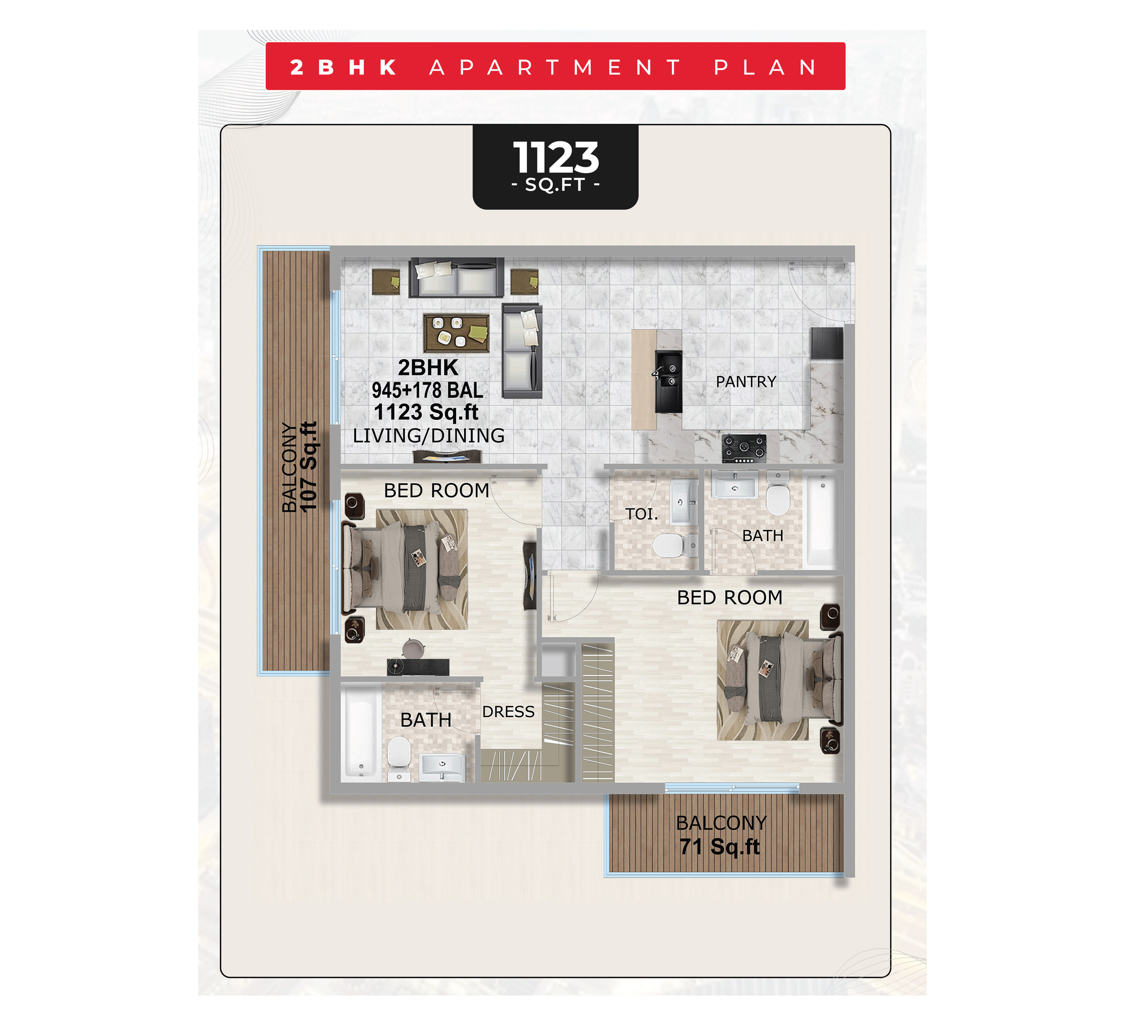 The architecture offers premium and exclusive range of apartments, each designed to maximise space, natural light and comfort. The floor to ceiling windows, elegant fitting and open-plan layouts are just some of the features that makes these homes a perfect choice for modern urban living. This development is truly a haven for those who desire a sophisticated lifestyle with all the convenience at doorstep. Beyond your apartment’s walls, world-class amenities such as a state-of-the-art gym, swimming pools, and leisure areas provide everything needed for a balanced and fulfilling lifestyle.